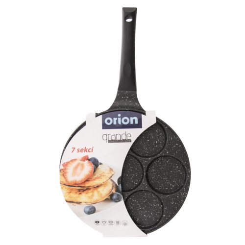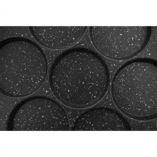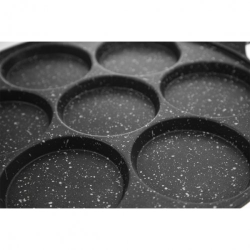 Pánev na volská oka / lívance s nepřilnavým povrchem PFLUON GRANIT. Vhodná pro přípravu sázených vajec, bramboráčků, lívanečků atd. s minimální potřebou tuku. Sedm sekcí. Vhodná na všechny typy spotřebičů včetně indukce. Průměr pánve 27 cm, průměr sekce 8 cm. EAN 8592381149260