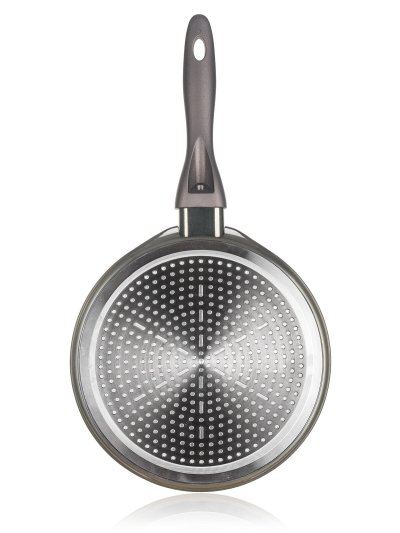 Hliníková litá kovaná pánev na palačinky METALLIC PLATINUM s nepřílnavým povrchem. Vnější karbon metalický nástřik, plně indukční dno, soft - touch rukojeť. Nepřilnavý povrch je velmi tvrdý a odolný proti poškrábání. Pánev je odolná proti nárazu a deformaci tvaru. Vysoká tepelná vodivost zajišťuje rychlé a ekonomické vaření - dlouho drží teplotu.