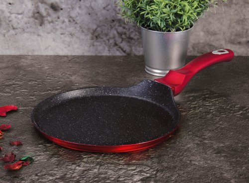 Elegantní pánev na palačinky od značky BerlingerHaus s ergonomickou rukojetí, která při vaření nikdy nepálí. Palačinková pánev má netradičně snížený okraj, aby se vám těsto snadno obracelo. Nepřilnavý povrch s mramorovým designem usnadní přípravu palačinek, ke kterým nemusíte přidat ani kapku oleje navíc. Těsto se nepřipaluje a čištění je otázkou jen pár vteřin. Pánev na palačinky je kompatibilní se všemi druhy ohřevu a je vhodná i na indukci.