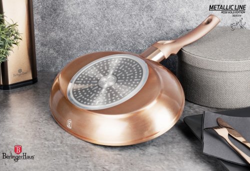 3vrstvý povrch s mramorovým designem charakteristický svou dokonalou nepřilnavostí je doménou také metalické řady Rosegold Metallic. Připravované pokrmy se nepřipalují a díky tomu se pánev velmi snadno čistí. Zároveň je vhodný pro zdravé vaření s minimem tuku nebo oleje. Vnitřní ani vnější vrstva neobsahují žádné škodliviny, výsledné pokrmy tak neztrácí svoje vitamíny.