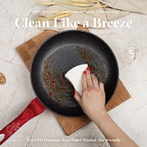 Pánev má kvalitní povrchovou úpravu, díky které se vám s ní bude dobře pracovat a snadno z ní odstraníte nečistoty. Pánev můžete také bez obav dát mýt do myčky.