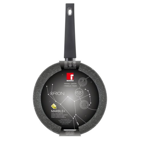 Pánev z kolekce Orion od Bergnera je ideální pro přípravu jakéhokoli typu receptu pro dvě nebo více osob. Vyrobena z kovaného hliníku, který umožňuje rychlou a rovnoměrnou distribuci tepla, zabraňuje vzniku horkých míst a šetří energii. Nepřilnavá vnitřní vrstva Marble+ zajišťuje, že se jídlo nelepí na povrch a usnadňuje čištění. Pánev je vhodná pro všechny typy sporáků včetně indukce.