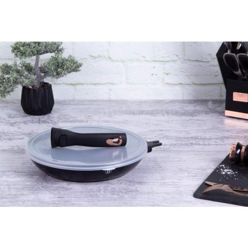 Univerzální středně velká pánev s odnímatelnou rukojetí v atraktivním designu Black Rose Collection . Pánev je potažena 3vrstvým titanovým povrchem, který je charakteristický svou dokonalou nepřilnavostí, připravované potraviny se nepřipalují a díky tomu se pánev velmi jednoduše čistí. Zároveň je vhodný pro zdravé vaření s minimem tuku nebo oleje, v závislosti na použitých surovinách klidně i bez jediné kapky tuku. Jedním stisknutím tlačítka lze odnímatelnou rukojeť z pánve sundat a tu poté vložit k dopékání nebo rovnou k pečení do trouby. Nasazení a odejmutí rukojeti zvládnete jednoduše jednou rukou. Jistě to oceníte také při skladování nebo údržbě. K pánvi je navíc praktické víčko, kterým ji lze uzavřít. <BR><BR>- vnitřní i vnější vrstva neobsahují žádné škodliviny, výsledné pokrmy tak neztrácí vařením svoje vitamíny <BR>- jádro pánve z kovaného hliníku vyniká vysokou stabilitou a perfektní tepelnou vodivostí, takže se nejen rychle a rovnoměrně zahřeje po celém povrchu, velmi snadno také teplotu při vaření udržuje <BR>- zesílené nerezové Turbo indukční dno pro maximální efektivitu přípravy pokrmu <BR>- ergonomicky tvarovaná rukojeť má protiskluzovou měkčenou úpravu, díky které skvěle padne do ruky, dobře se s ní manipuluje a umožní pevný a bezpečný úchop <BR>- díky izolačním prvkům zůstává rukojeť po celou dobu vaření chladná a nepálí <BR>- tělo pánve je zakončené zesíleným okrajem pro lepší odolnost vůči nárazům <BR>- vhodná na všechny druhy sporáků i na indukci <BR>- plně odnímatelná rukojeť umožňuje použití v troubě až do teploty 220°C <BR>- součástí balení je zároveň plastová poklice pro praktičtější a komfortnější užívání <BR>- díky nadstandartním nepřilnavým vlastnostem mramorového povrchu, je čištění rychlé a nenáročné, stačí omýt teplou vodou a houbičkou <BR>- lze mýt také v myčce na nádobí <BR>- ideální pro každodenní vaření, dušení, smažení i zapékání jakýchkoliv pokrmů <BR>- ECOfriendly, použité materiály neobsahují žádné škodliviny jako Pfoa, olovo ani kadmium <BR>- vysoce atraktivní moderní design s jedinečnou metalickou vnější barvou <BR>- pánev je díky svému perfektnímu vzhledu vhodná také pro přímé servírování pokrmů na stůl <BR><BR>- rozměry: průměr horního okraje 28 x výška 4,8 cm <BR>- objem: 1,7 litru <BR>- trouba: 220°C (bez rukojeti) <BR>- indukce: ano <BR>- sklokeramika: ano <BR>- plyn: ano <BR>- elektřina: ano <BR>- poklice: plastové víko (není vhodné do trouby) <BR>- barva: černá metalická <BR>- kolekce: Black Rose Collection