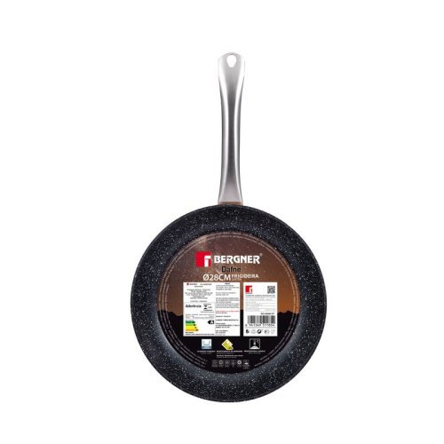 univerzální velká pánev s mramorovým povrchem a nerezovou rukojetí, díky které lze použít i v troubě- nepřilnavý povrch s mramorovým designem- připravované potraviny se nepřipalují a díky tomu se pánev velmi jednoduše čistí- zároveň je povrch vhodný pro zdravé vaření s minimem tuku nebo oleje, v závislosti na použitých surovinách klidně i bez jediné kapky tuku- jádro pánve z kovaného hliníku vyniká vysokou stabilitou a perfektní tepelnou vodivostí- rukojeť zůstává po celou dobu vaření chladná a nepálí- vhodná na všechny druhy sporáků i na indukci- díky nerezové rukojeti je vhodná také k zapékání v troubě do maximální teploty až 200°C- díky nadstandartním nepřilnavým vlastnostem je čištění rychlé a nenáročné, stačí omýt teplou vodou a houbičkou- lze mýt také v myčce na nádobí- ideální pro každodenní vaření, dušení a smažení jakýchkoliv pokrmů- ECOfriendly, použité materiály neobsahují žádné škodliviny jako Pfoa, olovo ani kadmium- moderní design a jedinečná metalická vnější barva- rozměry: průměr horního okraje 28 x výška 5 cm- trouba: 200°C- myčka: ano- indukce: ano- sklokeramika: ano- plyn: ano- elektřina: ano- povrch: mramor- značka: Bergner