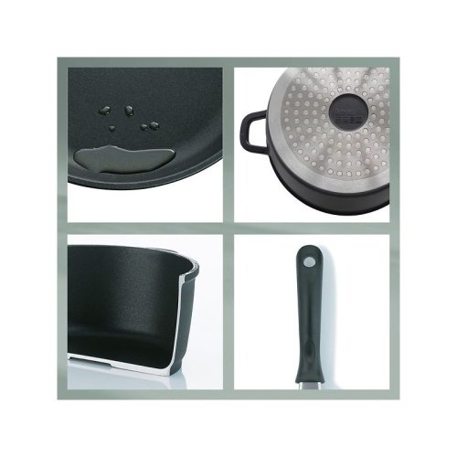 Pánev má kvalitní povrchovou úpravu, díky které se vám s ní bude dobře pracovat a snadno z ní odstraníte nečistoty. Pánev můžete také bez obav dát mýt do myčky.