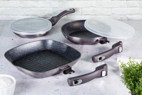 Univerzální velká pánev s nepřilnavým povrchem s mramorovým designem a odnímatelnou rukojetí v atraktivním designu Carbon PRO. Pánev je potažena 3vrstvým mramorovým povrchem, který je charakteristický svou dokonalou nepřilnavostí, připravované potraviny se nepřipalují a díky tomu se pánev velmi jednoduše čistí. Zároveň je vhodný pro zdravé vaření s minimem tuku nebo oleje, v závislosti na použitých surovinách klidně i bez jediné kapky tuku. Jedním stisknutím tlačítka lze odnímatelnou rukojeť z pánve sundat a tu poté vložit k dopékání nebo rovnou k pečení do trouby. Nasazení a odejmutí rukojeti zvládnete jednoduše jednou rukou. Jistě to oceníte také při skladování nebo údržbě. K pánvi je navíc praktické víčko, kterým ji lze uzavřít.