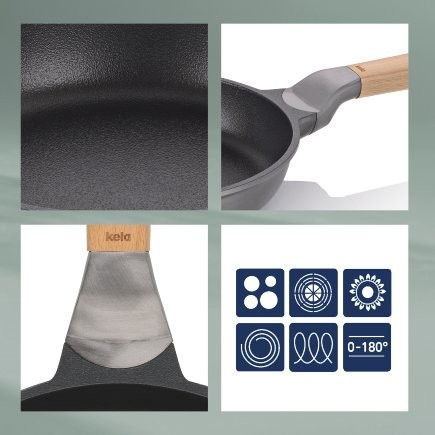 - materiál: litý hliník s nepřilnavým povrchem a dřevěnou rukojetí
