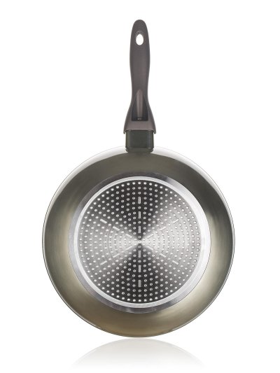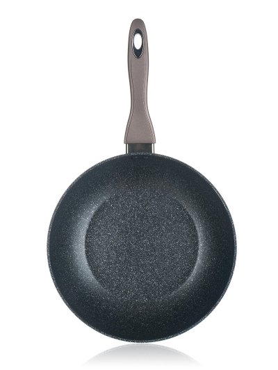 Hliníková litá kovaná WOK pánev METALLIC PLATINUM s nepřílnavým povrchem. Vnější karbon metalický nástřik, plně indukční dno, soft - touch rukojeť. Nepřilnavý povrch je velmi tvrdý a odolný proti poškrábání. Pánev je odolná proti nárazu a deformaci tvaru. Vysoká tepelná vodivost zajišťuje rychlé a ekonomické vaření - dlouho drží teplotu.