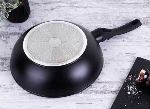 Materiál, ze kterého je pánev wok vyrobena, zaručí vynikající tepelnou vodivost. Je velmi odolná a vybavena praktickou rukojetí, díky které se pánev snadno drží a skvěle se s ní manipuluje.
