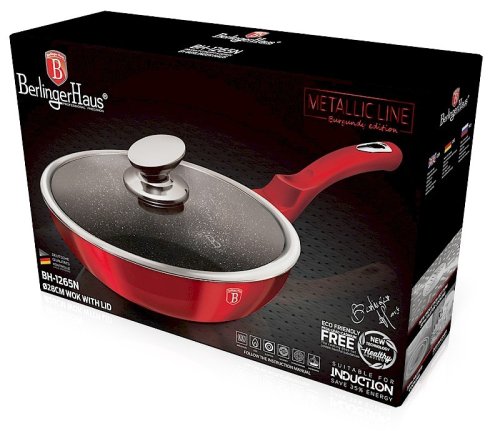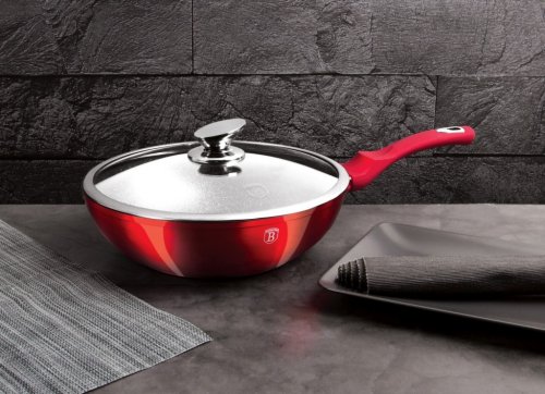 Pánev WOK s poklicí s mramorovým povrchem 28 cm Burgundy Metallic Line BH-1265