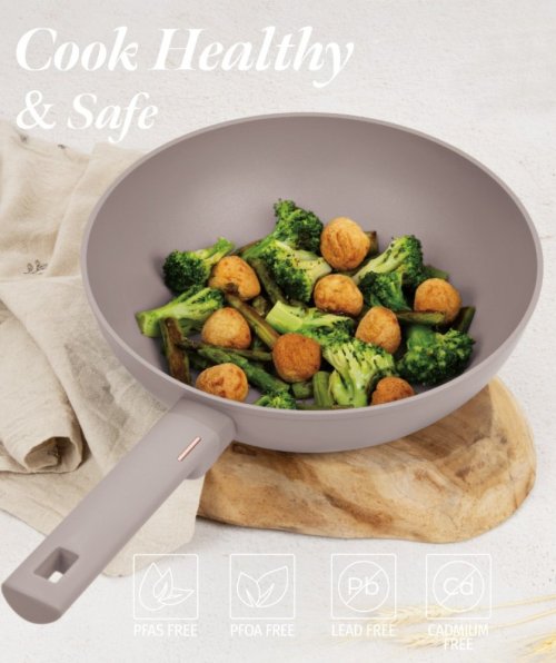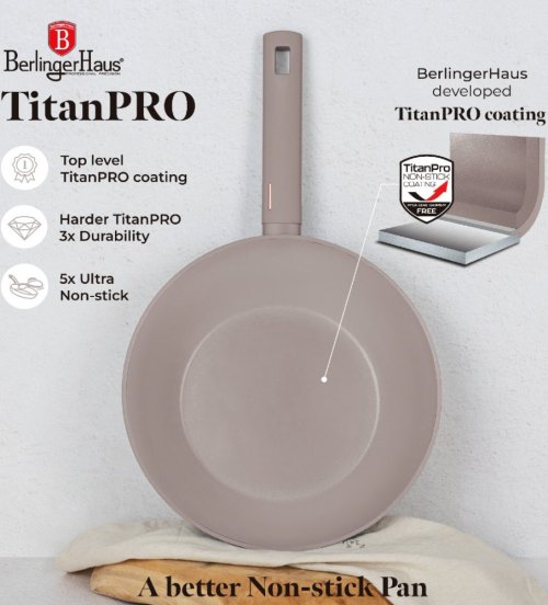 Materiál: kovaný hliník s nepřilnavým povrchem titanPro - Rozměry: pr. 28*7,4 cm 3,2 l - Barva: matná taupe - třívrstvý odolný nepřilnavý povrch titanPro - Ergonomická rukojeť Soft Touch Stay Cool - Minimalistický styl - Matná povrchová úprava - Na bázi turboindukce - Vhodné pro všechny typy varných desek - Šetrný k životnímu prostředí Neobsahuje PFOA, LEAD, kadmium - Snadno se čistí