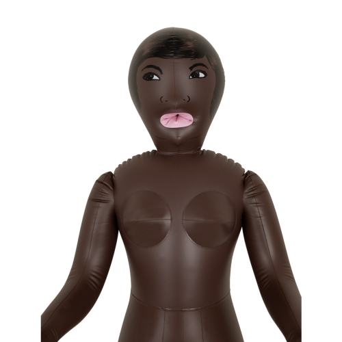 Černá nafukovací panna African je exotická kráska se 3 milostnými otvory.