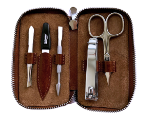 Pánská manikúrová sada z pravé kůže v hnědé barvě. Kvalitní nástroje z Německa mají dlouhodobou výdrž a jsou velmi odolné.