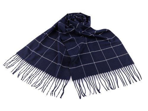 Pánská šála s třásněmi káro 30x175 cm - modrá tmavá