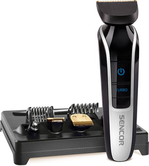 Dodávané příslušenství: Praktický stojan, nástavec na odstranění chloupků z nosu, nástavec na sestřih vousů,standardní nástavec na sestřih vlasů, nástavec na tvarování kontur, nástavec na sestřih dlouhých vlasů, regulace délky sestřihu vousů, regulace délky sestřihu tělových chloupků