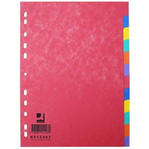 Lesklý kartonový rozlišovač má 12 dělicích dílů v různých barvách s prázdnou záložkou