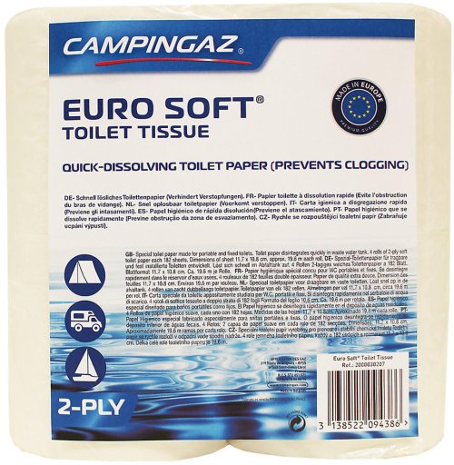 Papír toaletní EURO SOFT pro chem. toalety (4 ks). balení: 4 ks Speciální dvouvrstvý toaletní papír z celulosy pro chemická WC.