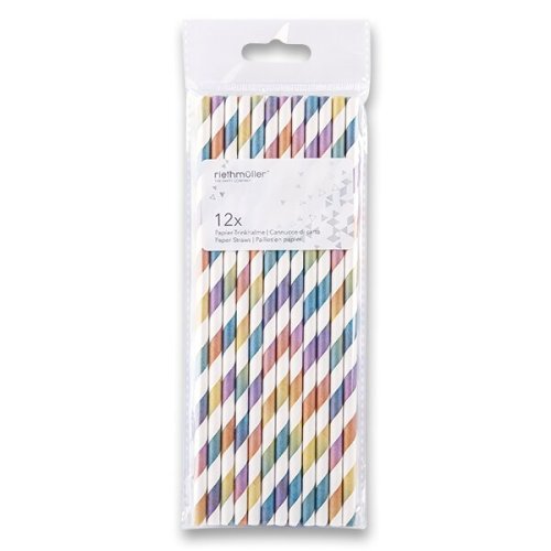 Papírová brčka s proužky v pastelových barvách. Délka brčka je 19,5 cm. Balení obsahuje 12 kusů.