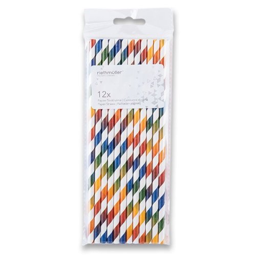 Papírová brčka s proužky v základních barvách. Délka brčka je 19,5 cm. Balení obsahuje 12 kusů.