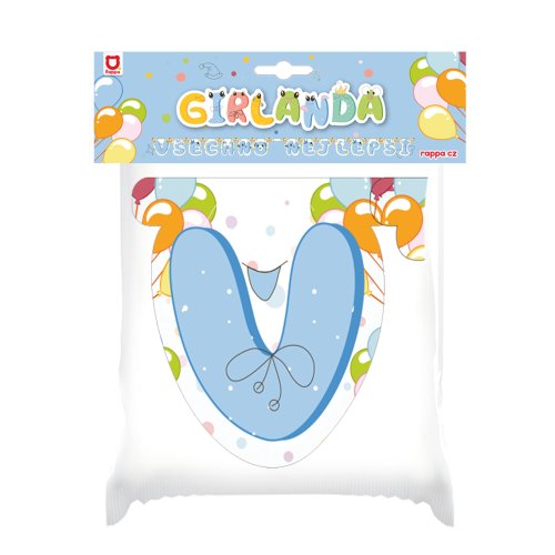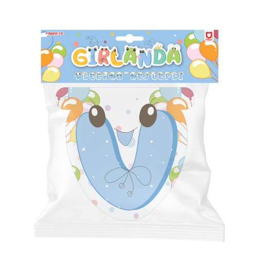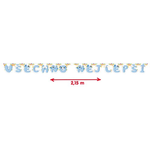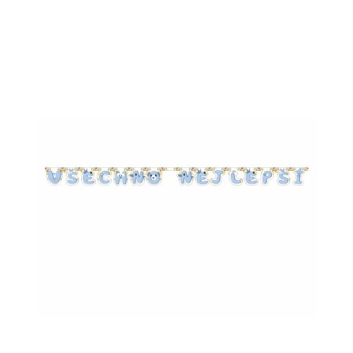 Super tip na oslavu - girlanda Všechno nejlepší v modrém provedení! Stačí roztáhnout a pověsit. Díky této veselé girlandě bude tvoje výzdoba na párty nepřehlédnutelná. Délka cca 215 cm.