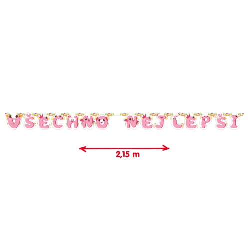 Máme pro tebe skvělý tip na oslavu - girlanda Všechno nejlepší v růžovém provedení! Stačí roztáhnout a pověsit. S touto veselou girlandou bude tvoje výzdoba na párty jedinečná. Délka cca 215 cm.
