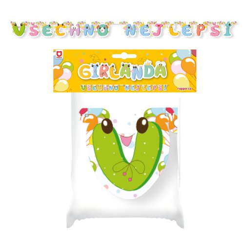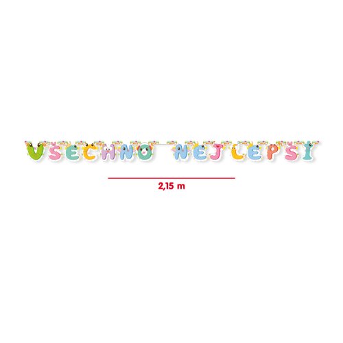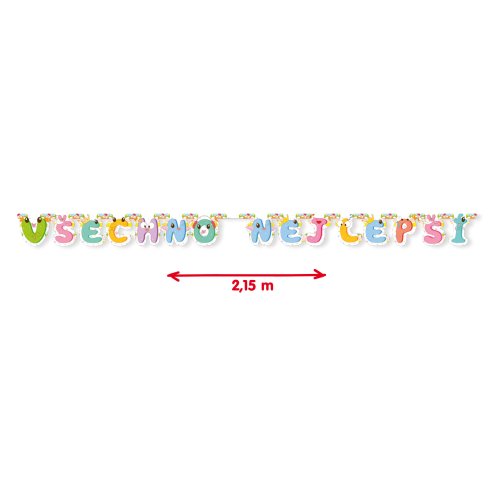 Super tip na oslavu - girlanda Všechno nejlepší! Stačí roztáhnout a pověsit. S touto parádní girlandou bude tvoje výzdoba na párty nepřehlédnutelná. Délka cca 215 cm.