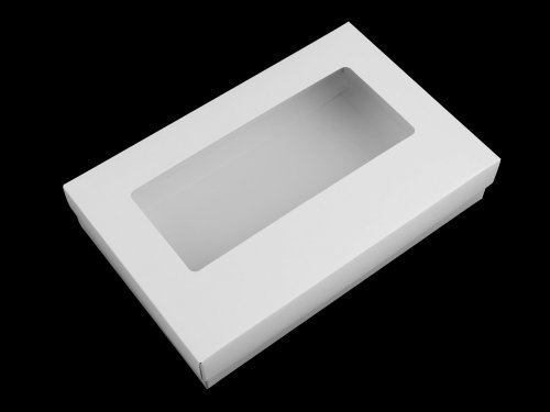Papírová krabice s obdélníkovým výřezem ve víku z průhledné fólie. Využijete ji na balení dárků, šátků, rukavic apod. Můžete si ji i dozdobit podle svého vkusu. Krabici dodáváme v rozloženém stavu (horní víko - 27 x 35 cm, spodní část krabice - 34 x 42 cm). Složíte si ji jednoduše podle vyznačených ohýbacích krajů. Rozměr průhledu je 7 x 17 cm. Připravili jsme pro vás foto návod na skládání krabičky.
