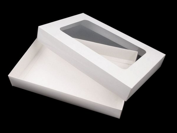 Větší papírová krabice má výřez ve víku z průhledné fólie. Využijete ji na balení dárků, šátků, šálů, uložení vánočních dekorací apod. Můžete si ji i dozdobit podle svého vkusu. Krabici dodáváme v rozloženém stavu (horní víko - 36 x 44 cm, spodní část krabice - 44 x 55 cm). Složíte si ji jednoduše podle vyznačených ohýbacích krajů. Rozměr průhledu je 15,5 x 27,5 cm. [Připravili jsme pro vás foto návod na skládání krabičky.]