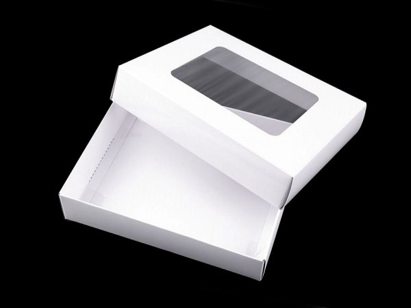 Papírová krabice má výřez ve víku z průhledné fólie. Využijete ji na balení dárků, šátků, uložení menších vánočních dekorací apod. Můžete si ji i dozdobit podle svého vkusu. Krabici dodáváme v rozloženém stavu (horní víko - 28 x 32 cm, spodní část krabice - 33 x 37 cm). Složíte si ji jednoduše podle vyznačených ohýbacích krajů. Rozměr průhledu je 10 x 14 cm. [Připravili jsme pro vás foto návod na skládání krabičky.]