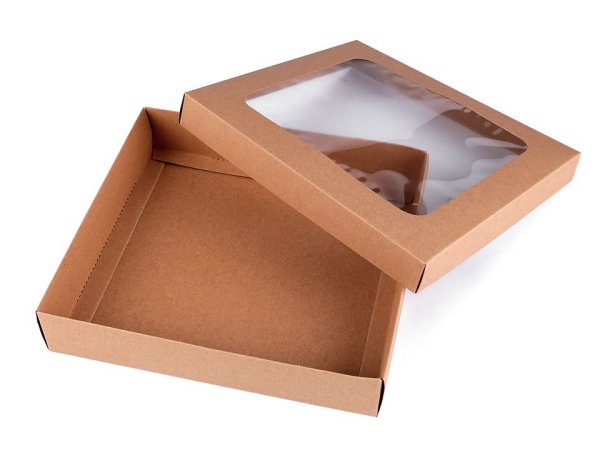 Papírová krabice má výřez ve víku z průhledné fólie. Využijete ji na balení dárků, šátků, triček, uložení menších vánočních dekorací apod. Můžete si ji i dozdobit podle svého vkusu. Krabici dodáváme v rozloženém stavu (horní víko - [35 x 37 cm], spodní část krabice - [40,5 x 42,5 cm]). Složíte si ji jednoduše podle vyznačených ohýbacích krajů. Rozměr průhledu je [15,5 x 17,5 cm].