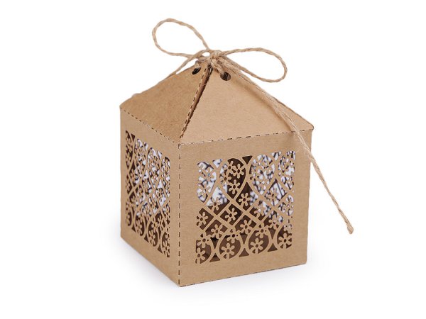 Papírová krabička v přírodním stylu má vyřezávaný filigránový design. Papírové krabičky vám poslouží k uschování malých drobností a sladkostí pro svatební hosty (svatebních mandlí, pralinek, luxusních čokoládek, bonbonů apod.). Využijete je i k aranžování slavnostních tabulí během oslav. Krabičku dodáváme v rozloženém stavu. Složíte ji jednoduše podle vyznačených ohýbacích krajů.