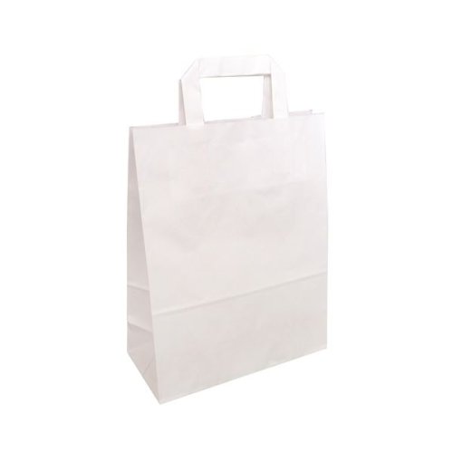 Jednobarevná bílá papírová taška s plochými uchy, ideální řešení pro balení, které je praktické, elegantní a zároveň šetrné k životnímu prostředí Skvělý základ pro vaše vlastní kreativní úpravy – přidejte …