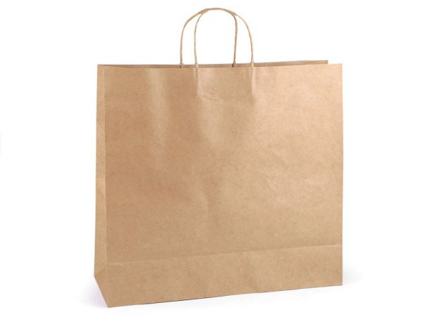 Velká papírová taška v přírodní barvě je kvalitní, vyrobená z pevnějšího papíru. Ucha jsou kroucená, také vyrobená z papíru. Je vhodná nejen k darování dárků, ale i k dozdobení. Můžete ji pomalovat nebo na ni nalepit např. flitry, glitry a různé ozdoby na scrapbooking. Taška je vhodná i k firemním účelům, může se potisknout. Nosnost tašky je cca 3 kg.