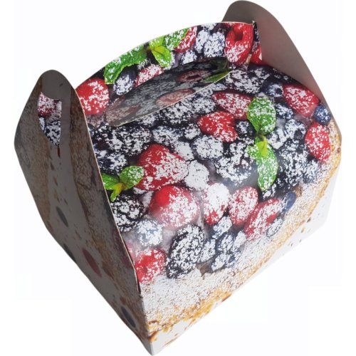 Papírová taštička Roma poslouží k nošení jednohubek, chlebíčků i zákusků bezpečně. Rozměry 18 x 16 cm.