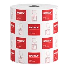Papírové ručníky v roli Katrin Plus - 1vrstvé, 300 m, 6 rolí 1vrstvý Celulóza Šířka role 21 cm Délka 300 m 1200 útržků Barva bílá V balení 6 rolí