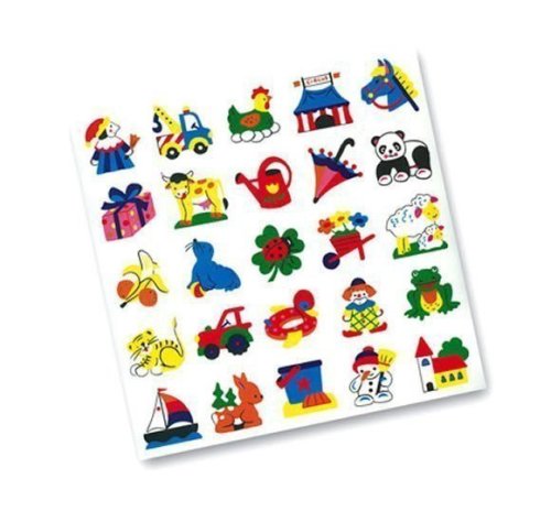 Nepostradatelná pomůcka do dětských kolektivů - identifikační značky pro nejmenší - obrázky místo jmenovek o rozměrech 4x4 cm, papírové, nalepovací, 25 kusů s jednoduchými barevnými veselými motivy.
