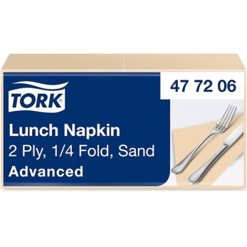 Papírové obědové ubrousky Tork - 200 ks Ideální do kaváren a barů 2vrstvý Typ skládání 1/4 Barva: Slonová kost Ražba: Ano Rozměr: 33 x 33 cm Rozměr složeného útřžku: 16,4 x 16,4 cm Kvalita: Advanced …