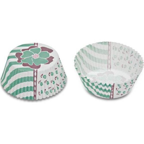 "Papírové mini pečicí formičky - košíčky s tyrkysovými květy a pruhy. Papírové formičky jsou vhodné na pečení muffinů a cupcakes.