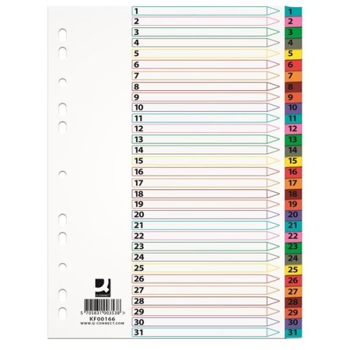 Vyrobené z bílého kartonu s gramáží 170 g/m2 Barevný index potažený fólií MYLAR Počet děličů: 31 + 1 Děrování: 11 (zesílené pole perforace) Index: 1-31 Každá sada je samostatně zabalena do fólie Mix …
