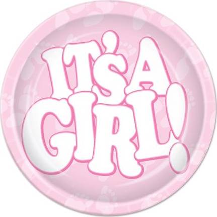 Papírový talíř Je to holka! Balení 10 ks, průměr 23 cm.