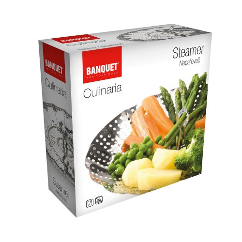 Univerzální nerezový napařovací vějíř určený k napařování knedlíků, zeleniny a k vaření v páře. Průměr napařovacího vějíře je 23 cm.