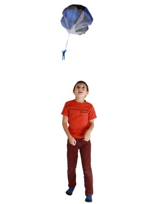 Plastový parašutista s padáčkem je skvělou hračkou jak doma tak i venku. Vlož parašutistu do padáku, vyhoď jej do vzduchu a pozoruj jak pomocí padáku letí parašutista dolů.