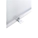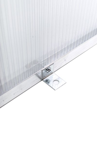 Jedna strana každé polykarbonátové desky je pokryta bílou fólií. Tato strana je chráněna proti UV záření, proto je určena jako vnější stěna natočená k slunci. Při montáži z každého okraje desky odlepte asi 2 palce ochranné fólie. Po dokončení montáže odstraňte veškerou zbývající fólii.
