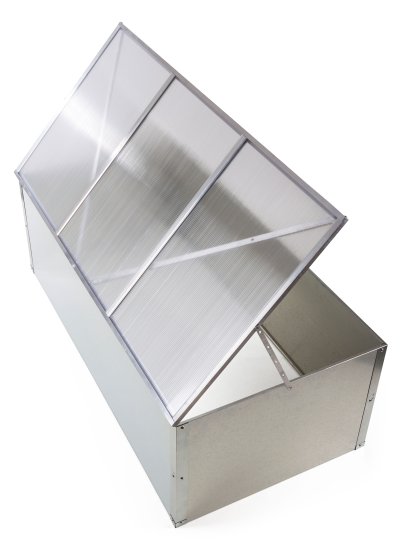 Horní aluminiový rám s výplní z kvalitního 4mm polykarbonátu vám při sadbě a péči o zasazené rostliny umožní pohodlný přístup díky variabilnímu nastavení v požadované poloze.