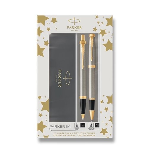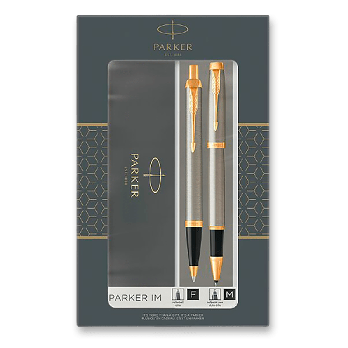 ROLLER:, * nasazovací víčko, * standardní náplň Quink pro rollery - černá, KULIČKOVÉ PERO (PROPISKA):, * stiskací mechanismus, * hrot F, * dodáváno s černou náplní, Vyrobeno ve Francii. Dodáváno v dárkové kazetě. (Podoba balení dle skladové dostupnosti)., TIP: K rolleru byste mohli využít náhradní náplň Parker F nebo M., TIP: Kupte si rovnou i náhradní náplň Parker do kuličkového pera., Parker IM je ideální partner s neomezenými možnostmi. Je elegantní i vysoce profesionální a spolehlivý. Nabízí odolný hrot z ušlechtilé nerezové oceli, širokou paletu provedení, inspirovaných tradicí značky Parker, uživatelské pohodlí i maximální výkonnost.