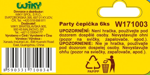 Párty dekorace s motivem Krtečka a jeho kamarádů. Papírová čepička s Krtečkem udělá na každé párty velkou parádu. 15cm, 6 ks.