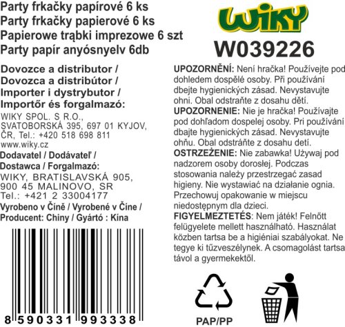 Párty frkačky HRA. Balení obsahuje 6 ks frkaček.