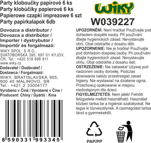 Párty kloboučky HRA 15 cm. Balení obsahuje 6 ks kloboučků.