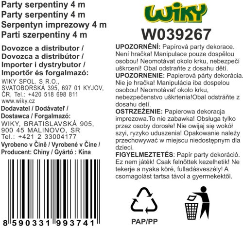 Párty serpentiny BALÓNKY 4 m