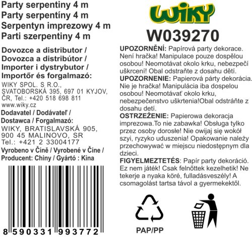 Papírové párty serpentíny TEČKY o délce 4 m.